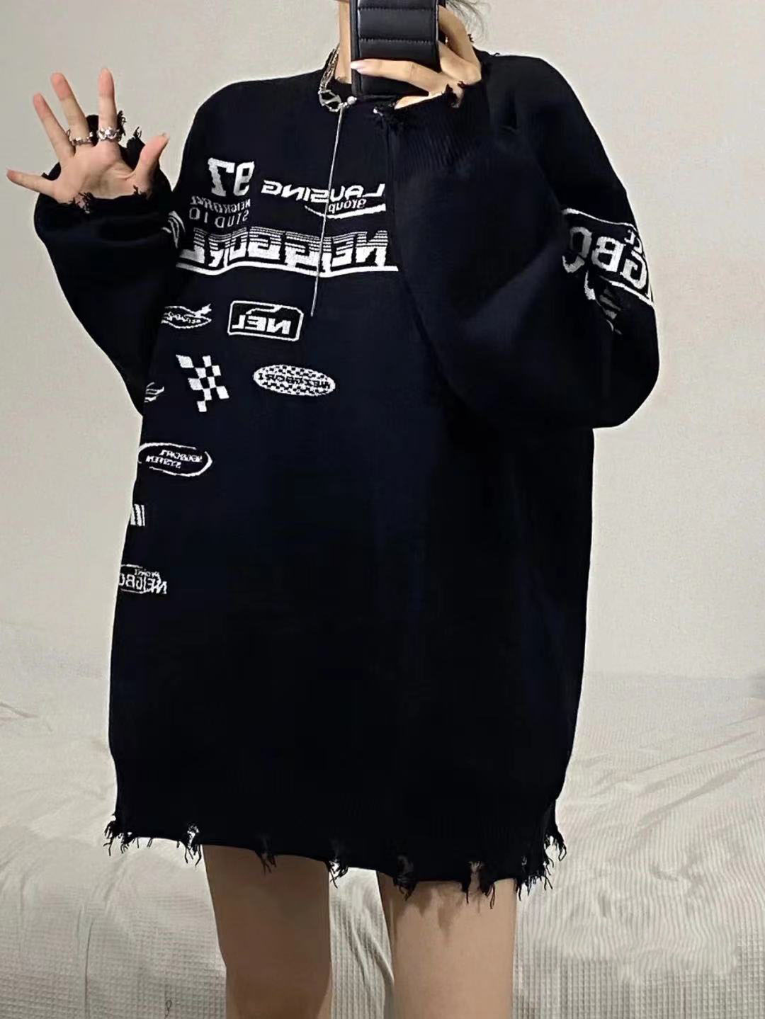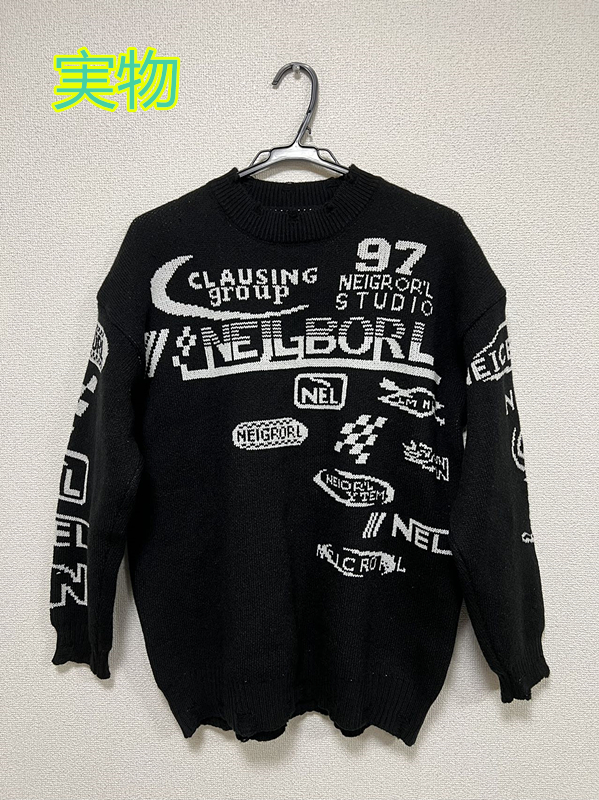 ダメージニットセータートップスカットソ