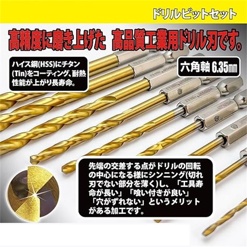 ドリルビットセット 13本組 六角軸ド
