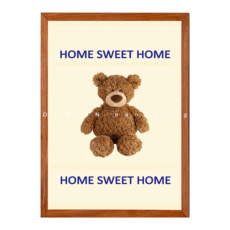 額縁付くまポスター30cm×40cmおしゃれかわいい韓国雑貨インテリアアンティーク北欧ベアロゴぬいぐるみ白ホワイトイエローブラウン木製ウッドフレーム卓上壁掛け絵画立てかけアートアートパネルタペストリー
