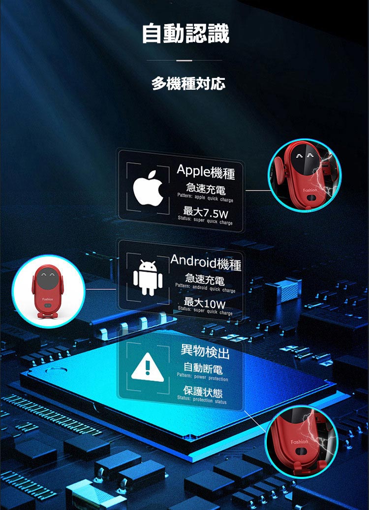 商品紹介 Qiワイヤレス急速充電車載ホルダー