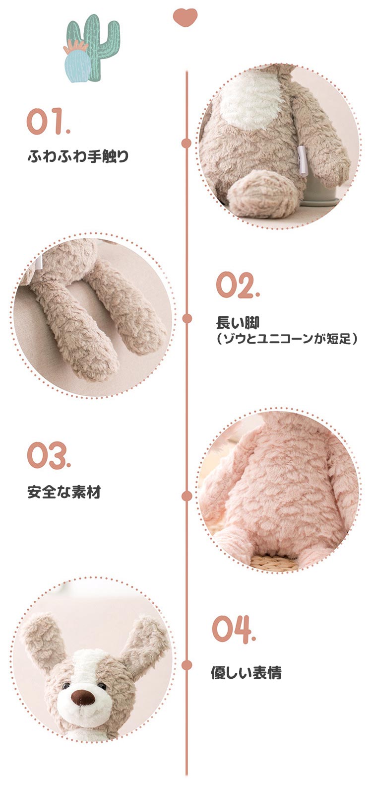 デザイン: ウサギ・白 ウサギ・ピンク イヌ ゾウ ユニコーン クマ ヒツジ ダイナソー ニュウギュウ