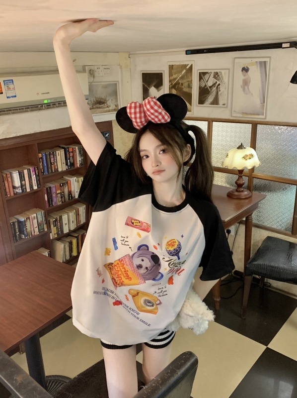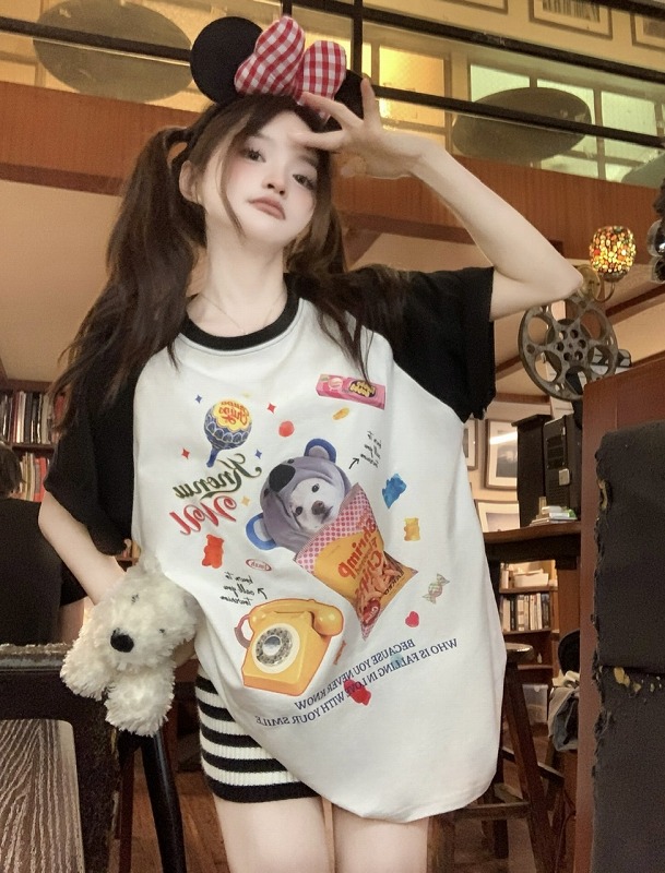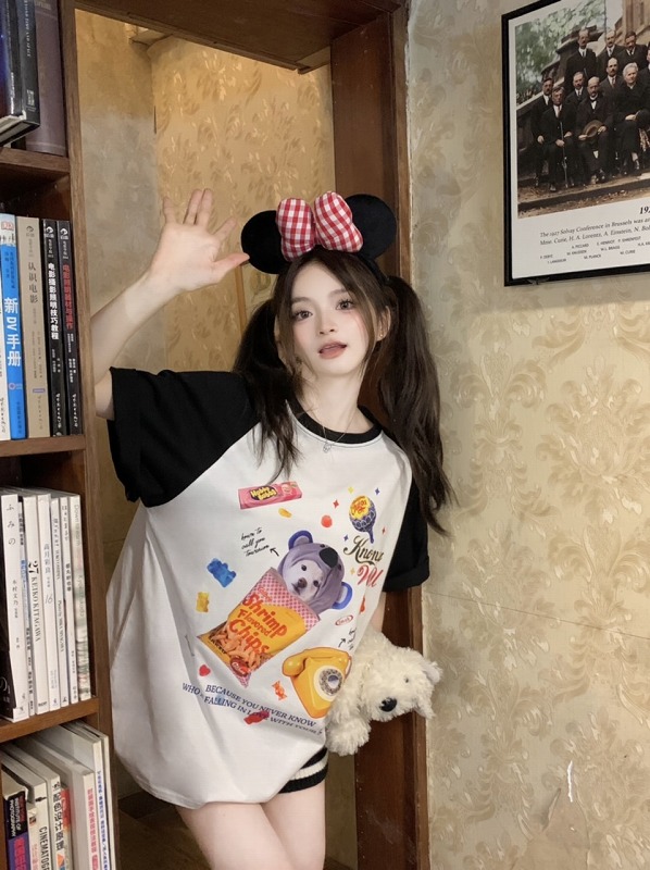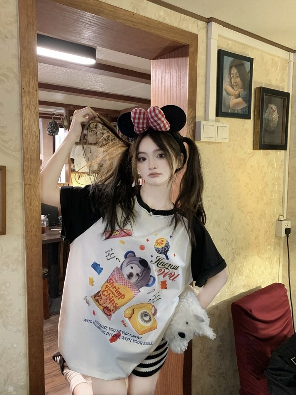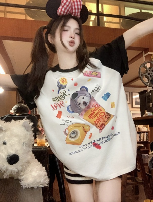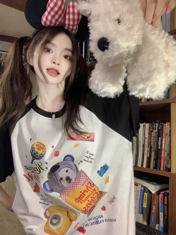 春物 春コーデ 夏物 夏コーデ 春夏新作 秋物 秋コーデ 冬物 冬コーデ 秋冬新作 新品 韓国ファッション レディース 流行 大人気 オシャレ 大人 きれいめ 綺麗目 上品 お洒落 スタイルUP 20代 30代 40代 50代 かっこいい 格好いい かわいい 可愛い lady trend fashion 半袖 五分袖 プリント 犬 バイカラー トップス カットソー Tシャツ ビッグ ゆったり ホワイト ベージュ ブラック 黒 ダンス 衣装 ヒップホップ HIPHOP レディース メンズ ガールズ ストリート かわいい 個性的 奇抜 韓国