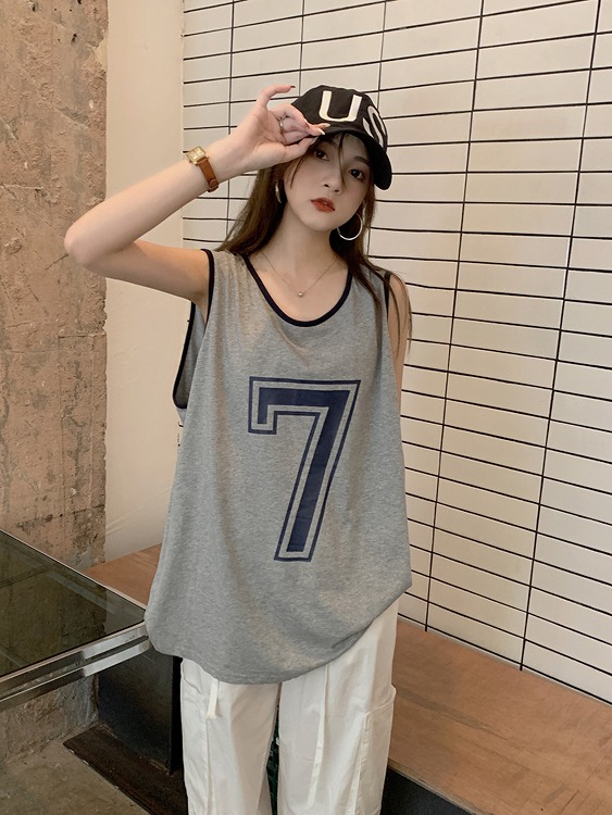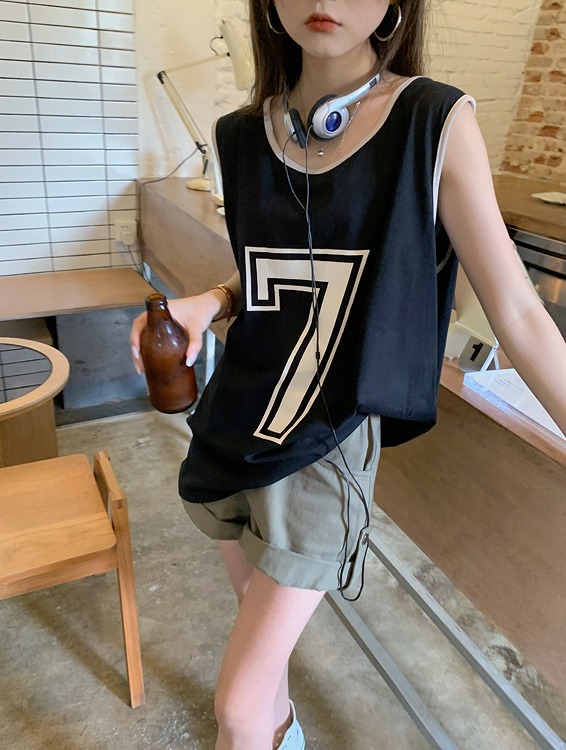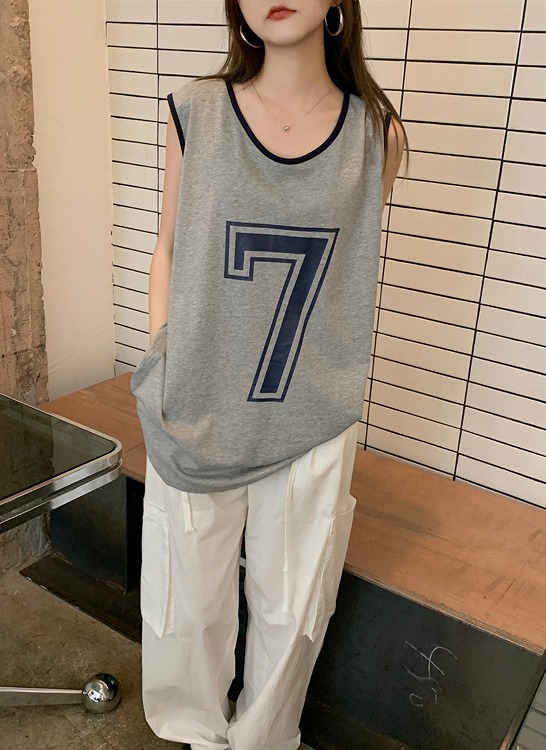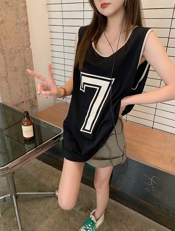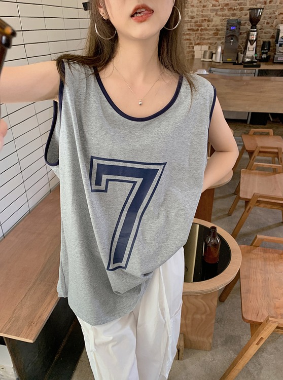 タンクトップレディースTシャツノースリーブUネックロゴプリント