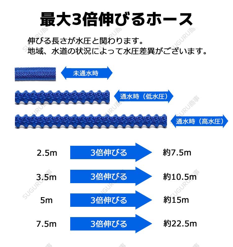 2.5m-7.5m 3倍伸びる 高圧洗