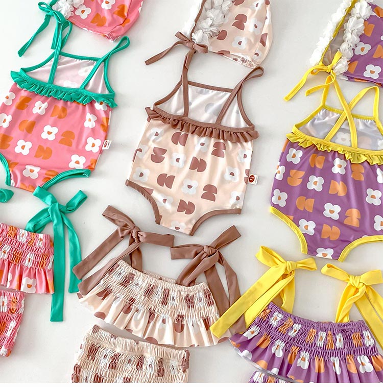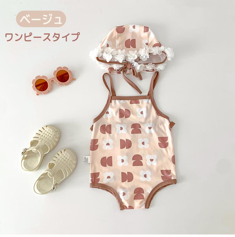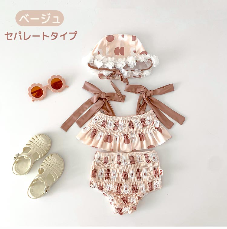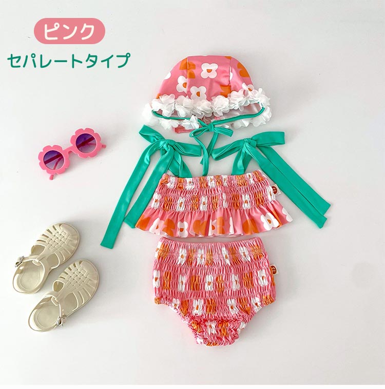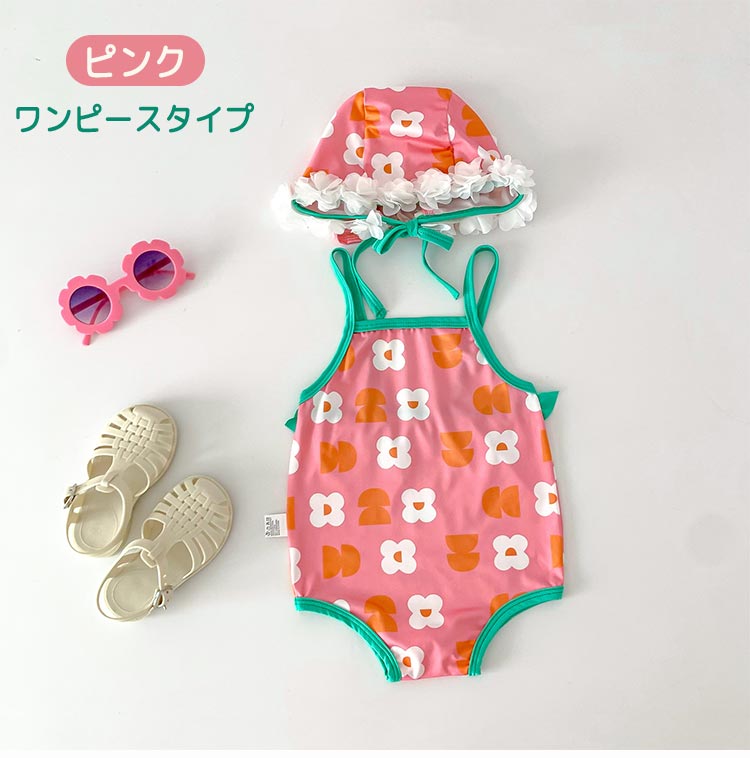 女の子 水着 キャップ付き 3点セット