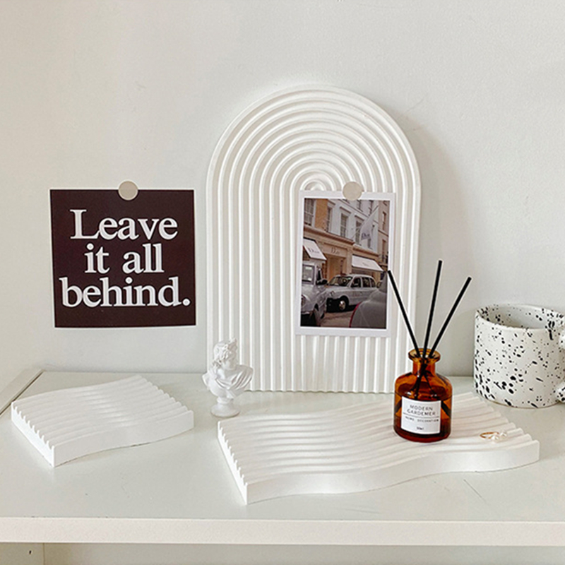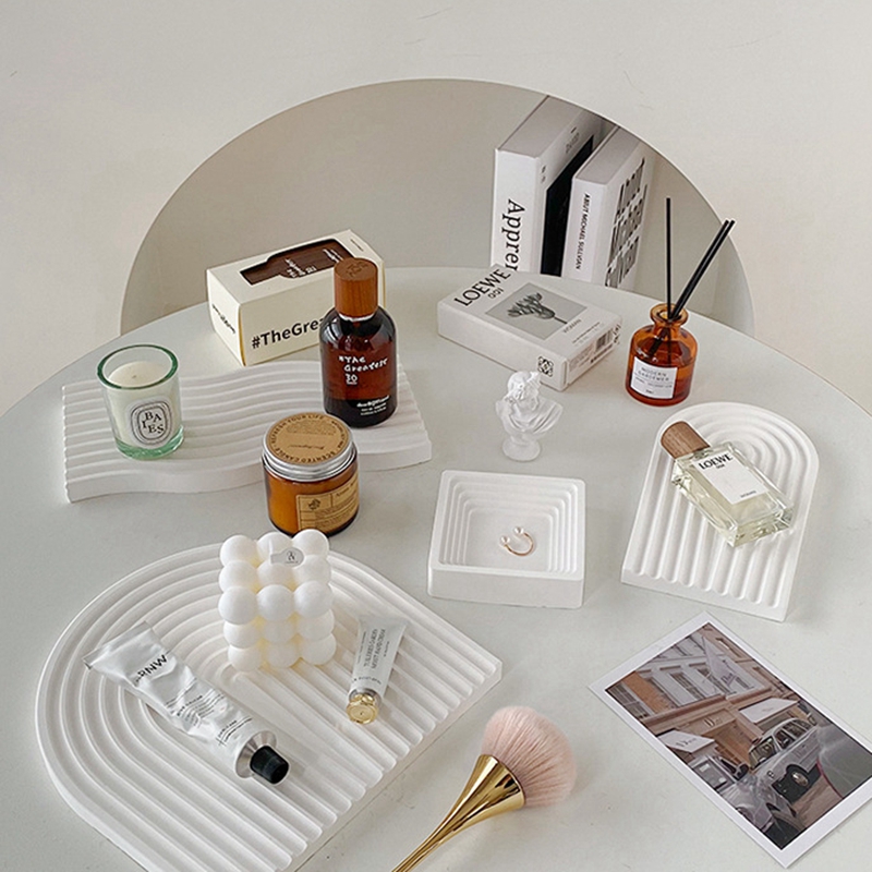 マルチプレート6デザイントレイ白ホワイト無地シンプル韓国雑貨インテリア北欧おしゃれ大きいディスプレイ収納小物入れアクセサリー鍵香水化粧品置物キャンドル大きい小さいウェーブ半円長い石膏