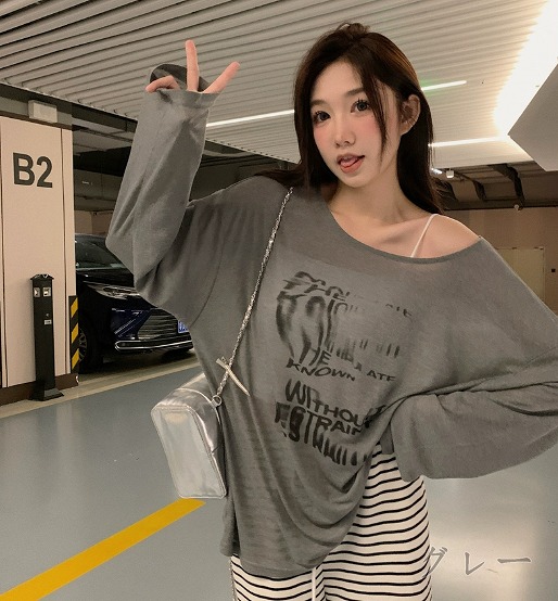 プリント長袖トップスカットソーTシャツ