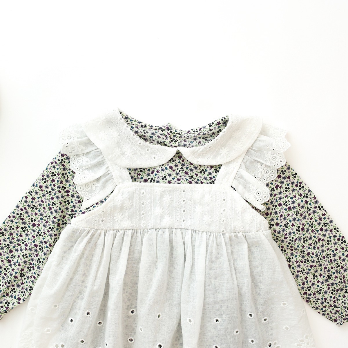 夏 秋 レトロワンピース レディース ワンピース レトロ調 ウエスト花刺繍 フリルカラー ロング丈 長袖 ホワイト イエロー S M L XL クラシック クラシカル きれいめ 上品 大人かわいい 刺