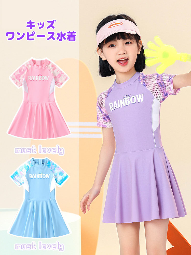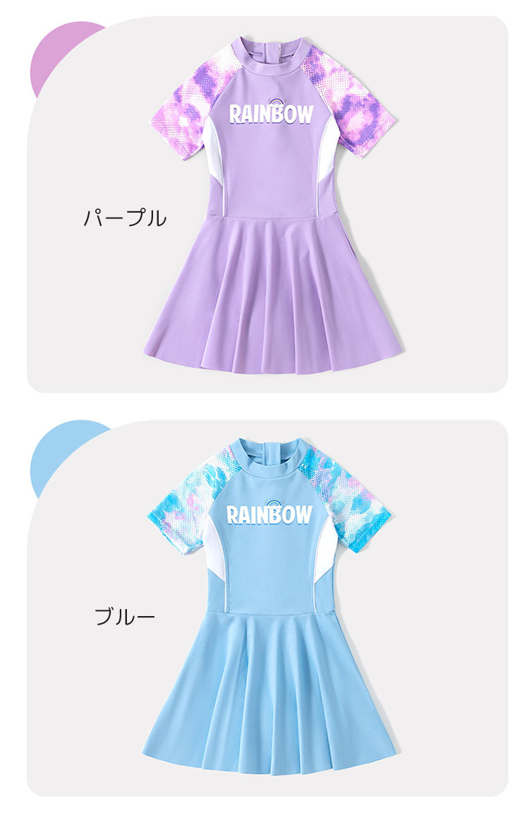 キッズ 水着 女の子 ワンピース 可愛い 人魚姫水着 2点セット ワンピース+ショートパンツ ベビー水着 半袖 パッドなし 人魚 人魚姫 ガールズ 旅行 水遊び プール 夏 海水浴 紫外線対策 スイム