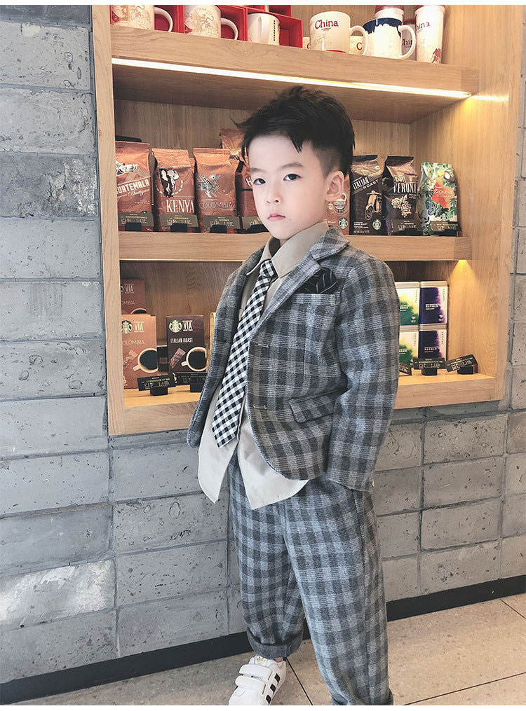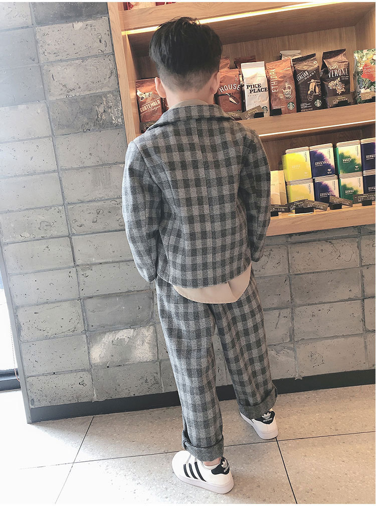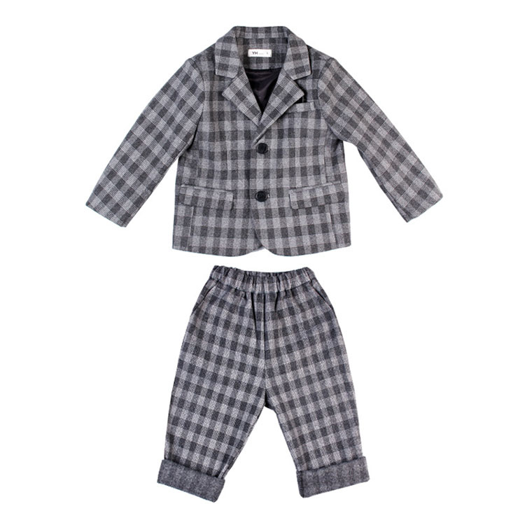カッコイイ男の子チェック柄スーツ2点セ