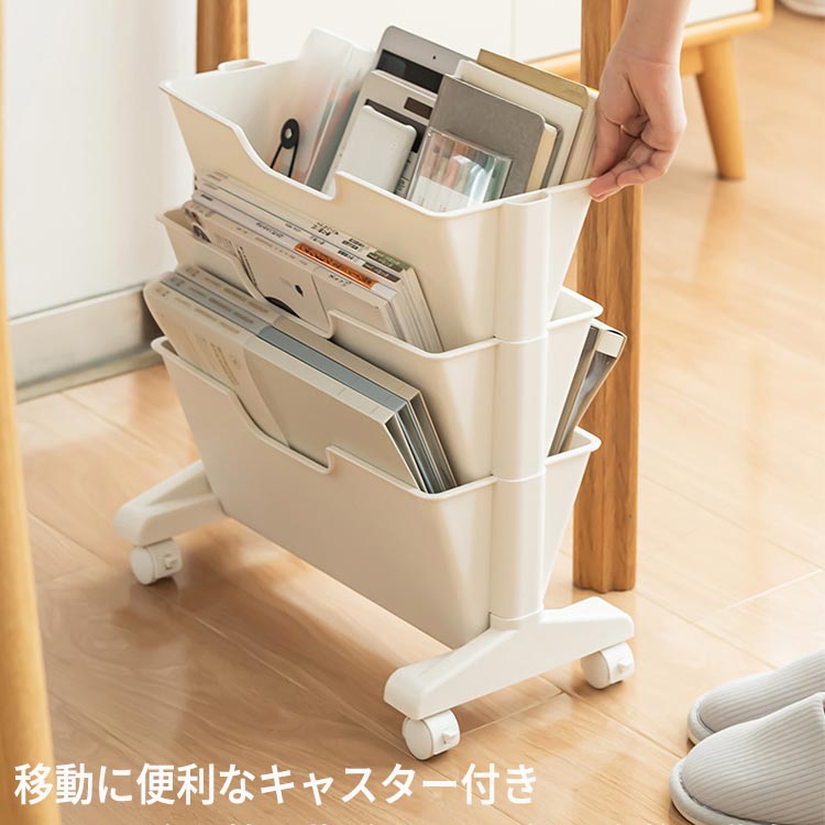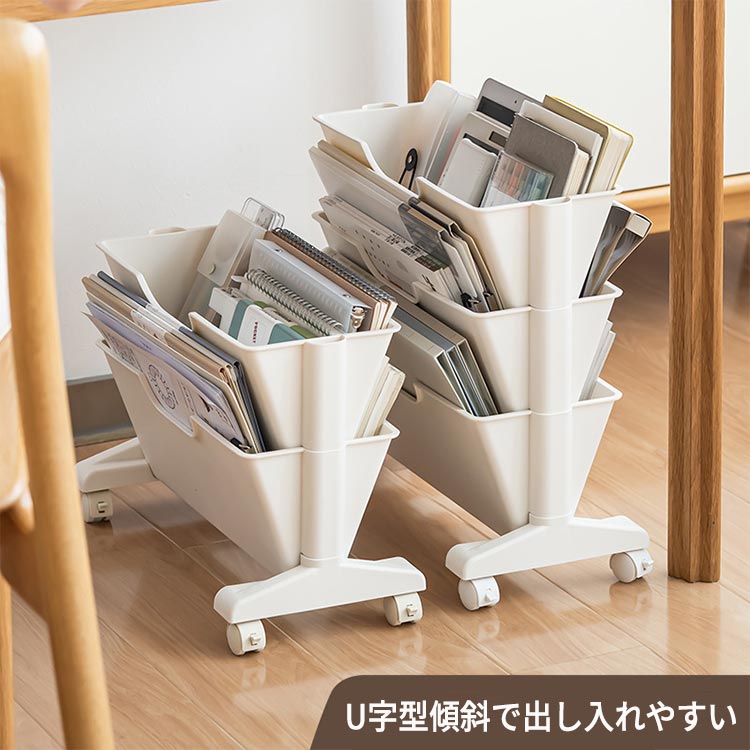 デスク下 キャスター付き 書類収納 斜