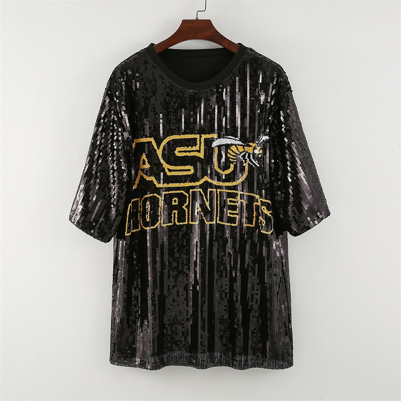 スパンコールロゴブラック黒格好いい半袖