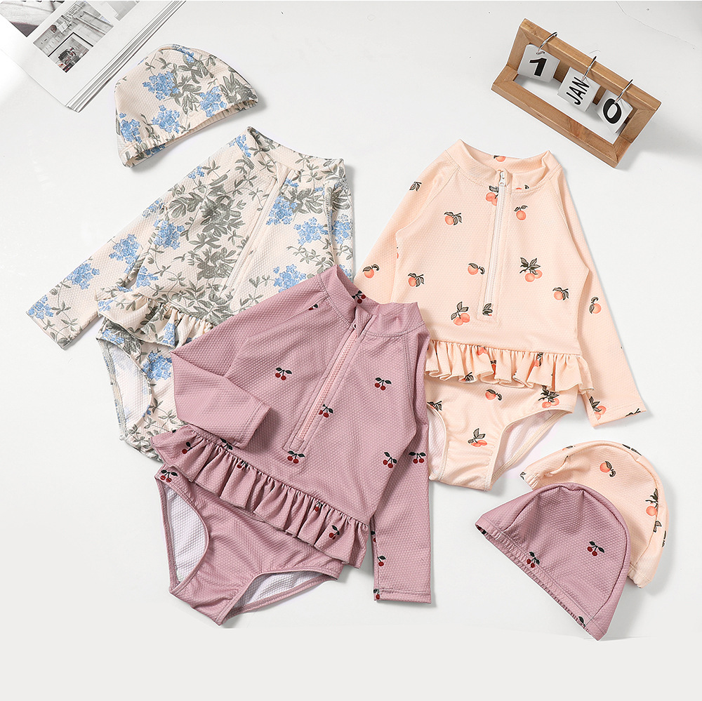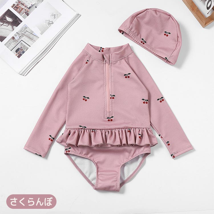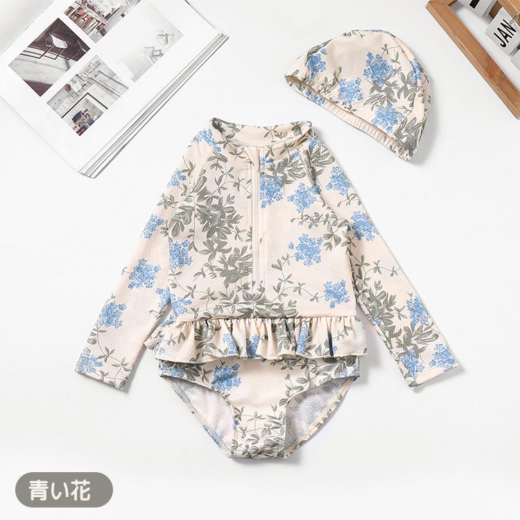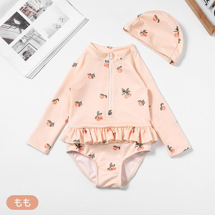 水着 女児 キャップ付き 長袖 女の子