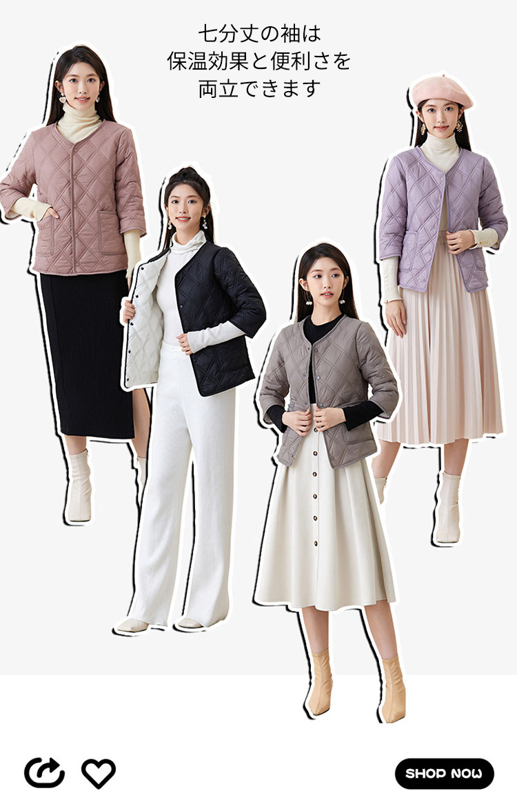 保温効果と便利さを両立 七分袖 裏ボア