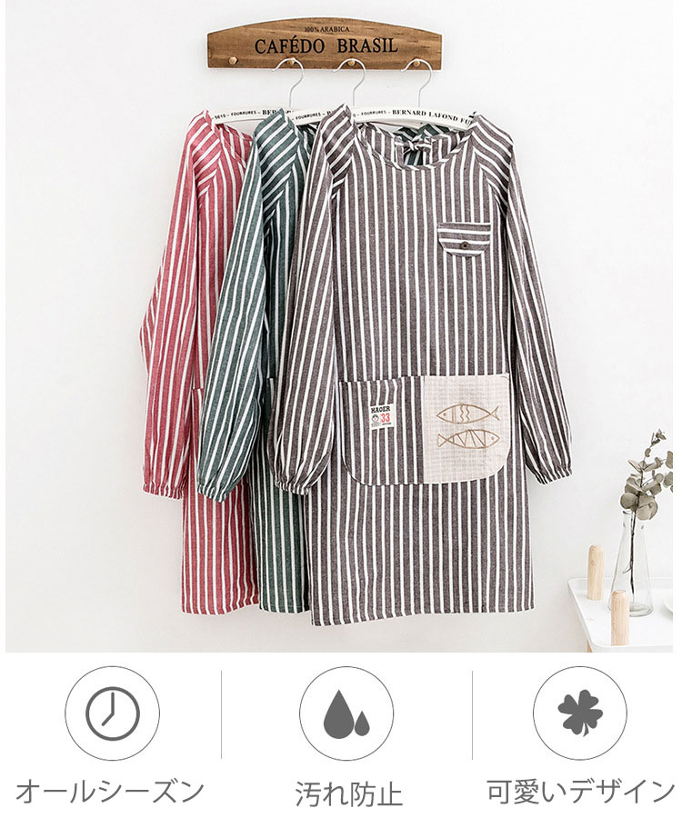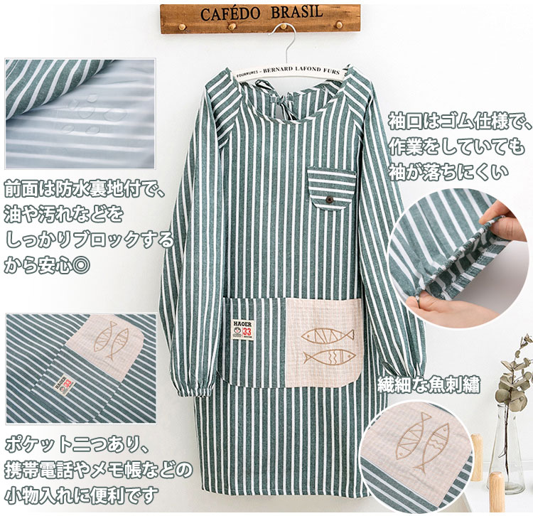 割烹着エプロン 長袖 エプロン レディ
