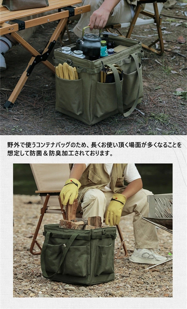 ・キャンパーやアウトドア好きな方のご要望に応じ、商品開発をいたしました。タフ仕様で耐水耐久性が優れたコンテナバッグ大容量を発売させていただきました。25Lの大容量、耐荷重30KGの頼れるマルチバッグ 薪ケースで、ガンガン使えます。