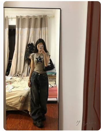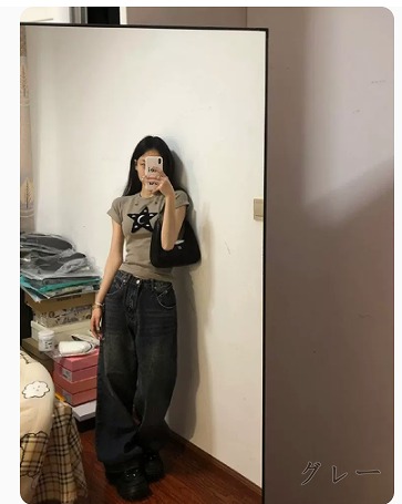 デニムパンツ ビジュー付き