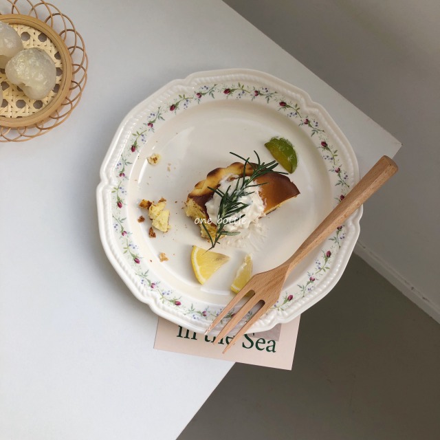 フリルお皿食器花柄レトロ北欧おしゃれ可愛いかわいいカフェデザインプリント雑貨安いイラストお揃いプレート白ホワイトバラ花型大きい小さい韓国韓国雑貨