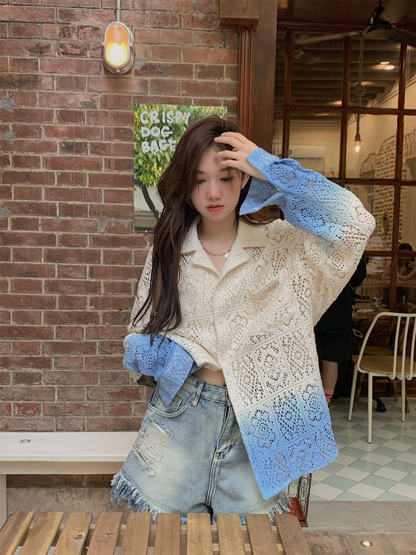 春物 春コーデ 夏物 夏コーデ 春夏新作 秋物 秋コーデ 冬物 冬コーデ 秋冬新作 新品 韓国ファッション レディース 流行 大人気 オシャレ 大人 きれいめ 綺麗目 上品 お洒落 スタイルUP 20代 30代 40代 50代 かっこいい 格好いい かわいい 可愛い lady trend fashion ブラウス シャツ 透け編み 切り替え バイカラー 配色 体型カバー 着痩せ シンプル ファッション トップス カットソー レディース 女