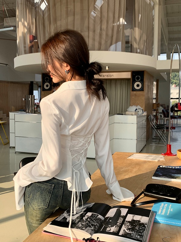 シアースリーブ ドッキングシャツ ボウタイシャツブラウス