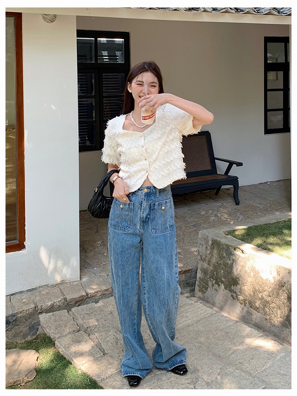 デニムパンツ ビジュー付き