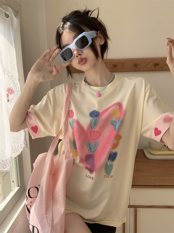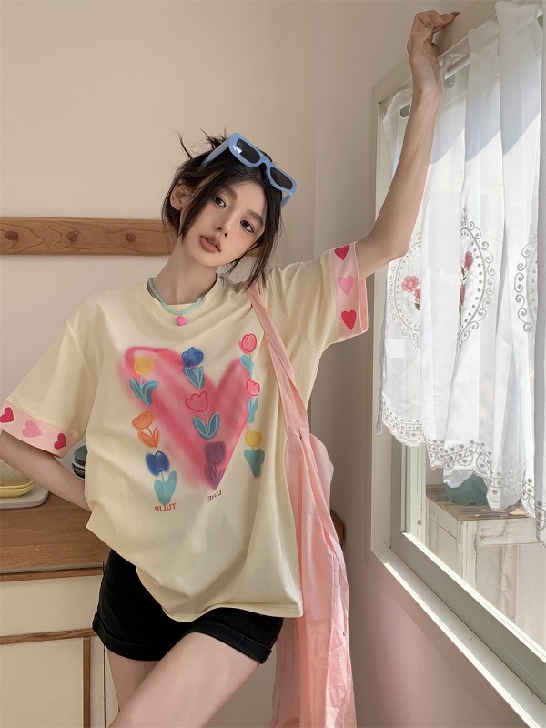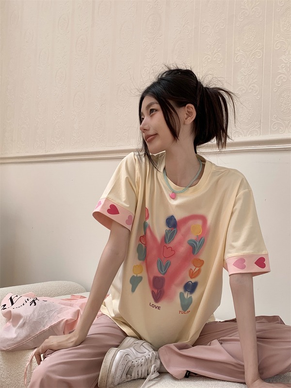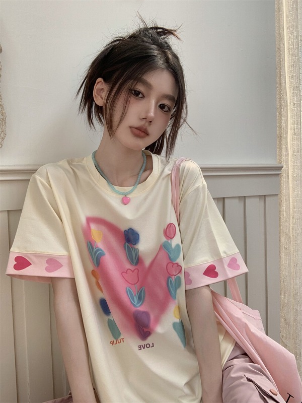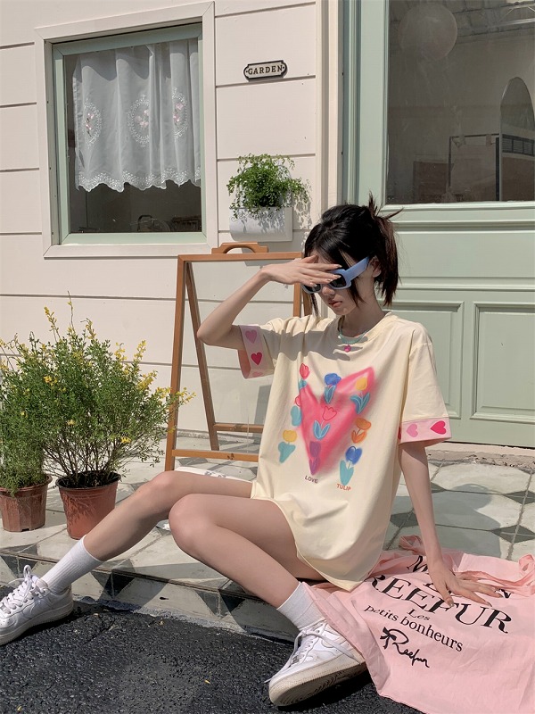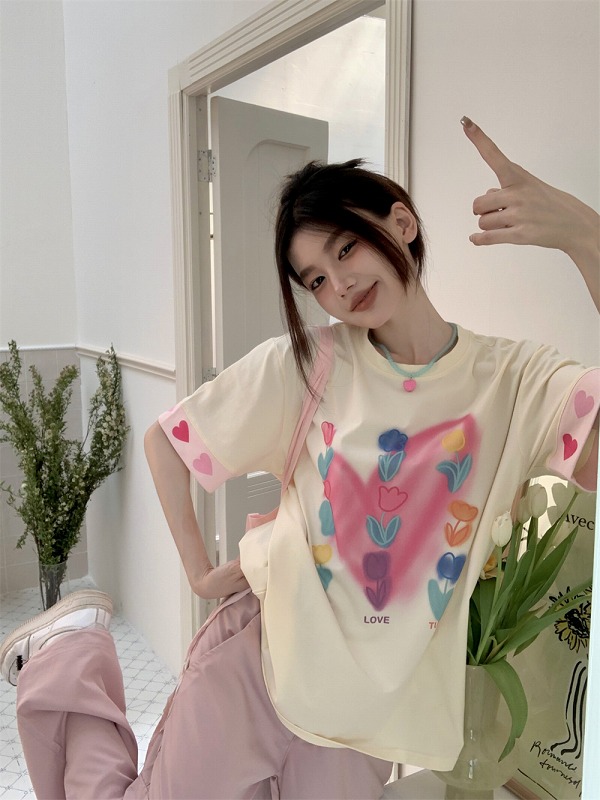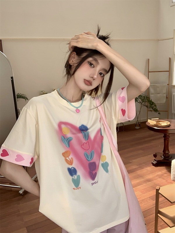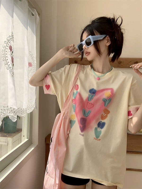 春物 春コーデ 夏物 夏コーデ 春夏新作 秋物 秋コーデ 冬物 冬コーデ 秋冬新作 新品 韓国ファッション レディース 流行 大人気 オシャレ 大人 きれいめ 綺麗目 上品 お洒落 スタイルUP 20代 30代 40代 50代 かっこいい 格好いい かわいい 可愛い lady trend fashion Tシャツ カットソー 五分 七分 半袖 プリント 切り替え 体型カバー 着痩せ シンプル カジュアル トップス カットソー レディース 女