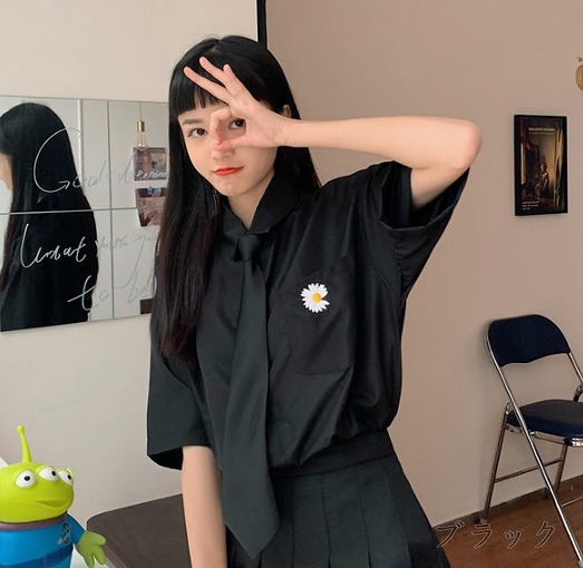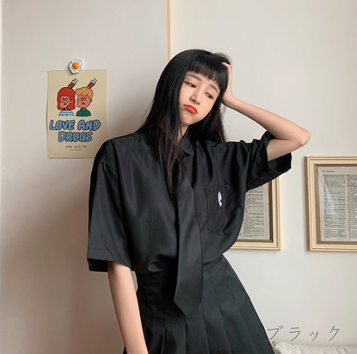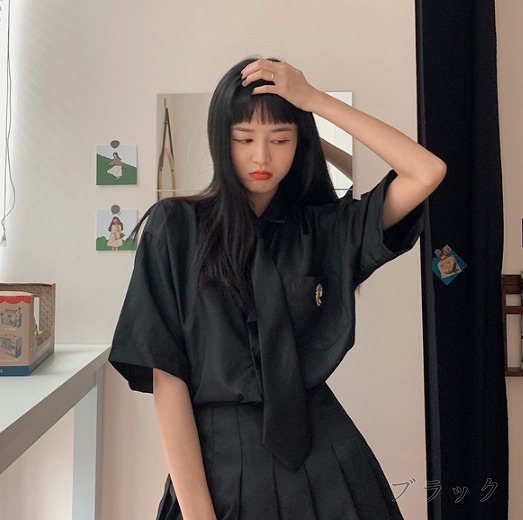 シアースリーブ ドッキングシャツ ボウタイシャツブラウス