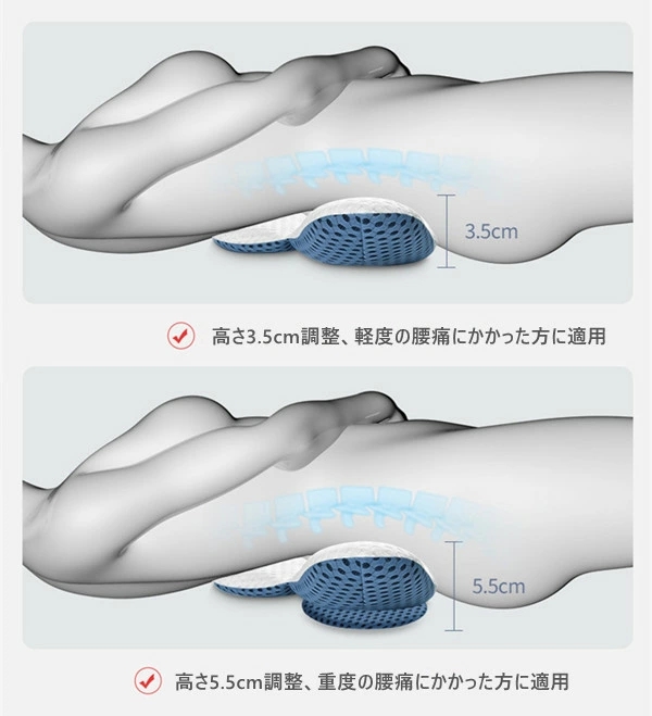 腰痛 クッション 腰枕 2color 腰痛対策 腰マクラ 安眠サポートン体圧分散 高さ調整可能 腰まくら 仰向き寝 横向き寝 人体工学 姿勢の矯正