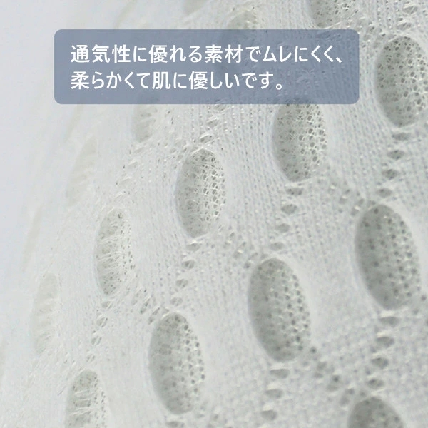 通気性に優れる素材でムレにくく、柔らかくて肌に優しいです。