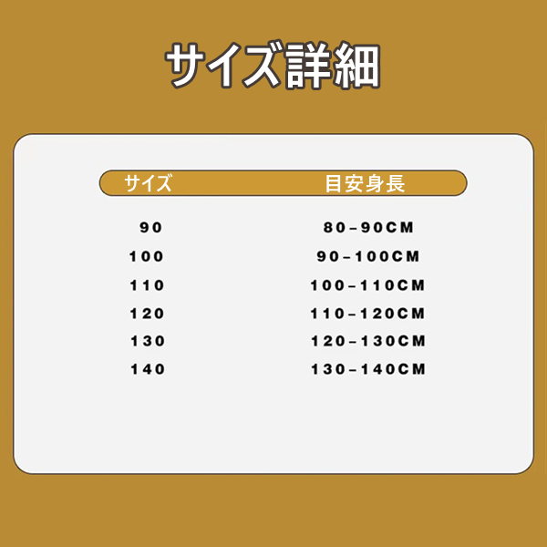 horizontal-key: 90(目安身長80-90cm) 100(目安身長90-100cm) 110(目安身長100-110cm) 120(目安身長110-120cm) 130(目安身長120-130cm)