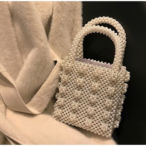 巾着付パールビジューバッグハンドバッグビーズ白ホワイト結婚式パーティーレディース二次会スクエアキラキラ真珠鞄マチあり大容量大きい大きめ小さい小さめコンパクトおしゃれ可愛い韓国謝恩会同窓会