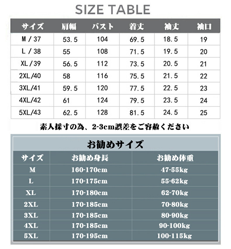 サイズ: M(S相当) L(M相当) XL(L相当) 2XL(LL相当) 3XL(3L相当) 4XL(4L相当) 5XL(5L相当)