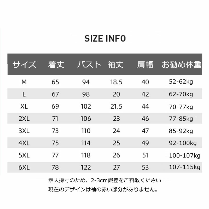 サイズ: M(S相当) L(M相当) XL(M/L相当) 2XL(L/LL相当) 3XL(LL/3L相当) 4XL(3L/4L相当) 5XL(4L/5L相当) 6XL(5L/6L相当)
