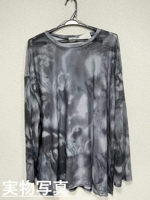 シースルー タイダイ柄 トップス カットソー 長袖 薄手 透け感 Tシャツ グレー レディース メンズ ガールズ ダンス 衣装 ヒップホップ HIPHOP 韓国 おしゃれ かっこいい 大きい ビッグ ストリート マーブル 個性的 服