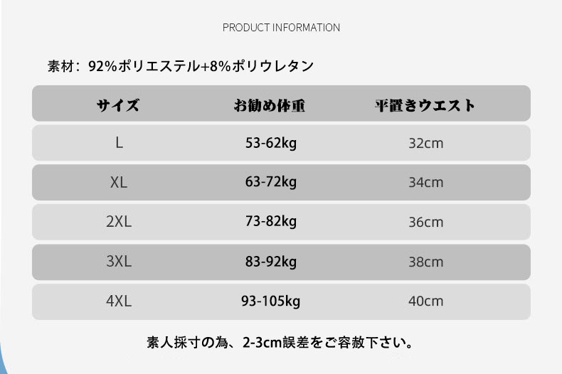 サイズ: L XL 2XL 3XL 4XL