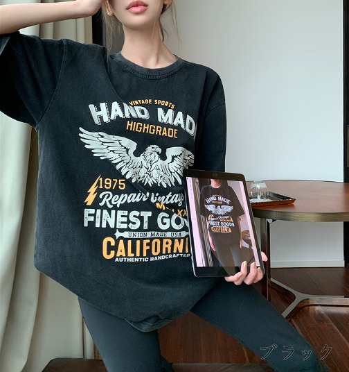 タンクトップレディースTシャツノースリーブUネックロゴプリント