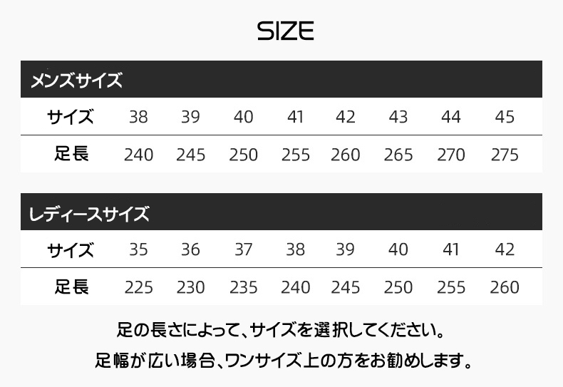 サイズ: 36/23.0 37/23.5 38/24.0 39/24.5 40/25.0 41/25.5 42/26.0 43/26.5 44/27.0