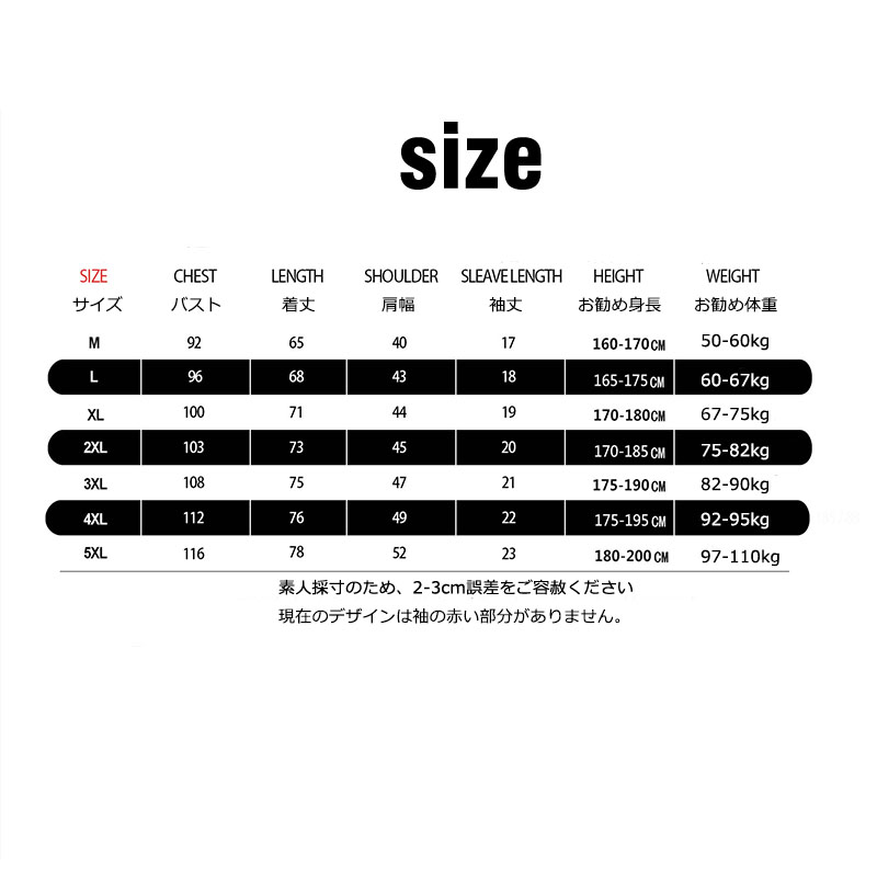 サイズ: M(S相当) L(M相当) XL(M/L相当) 2XL(L/LL相当) 3XL(LL/3L相当) 4XL(3L/4L相当) 5XL(4L/5L相当)