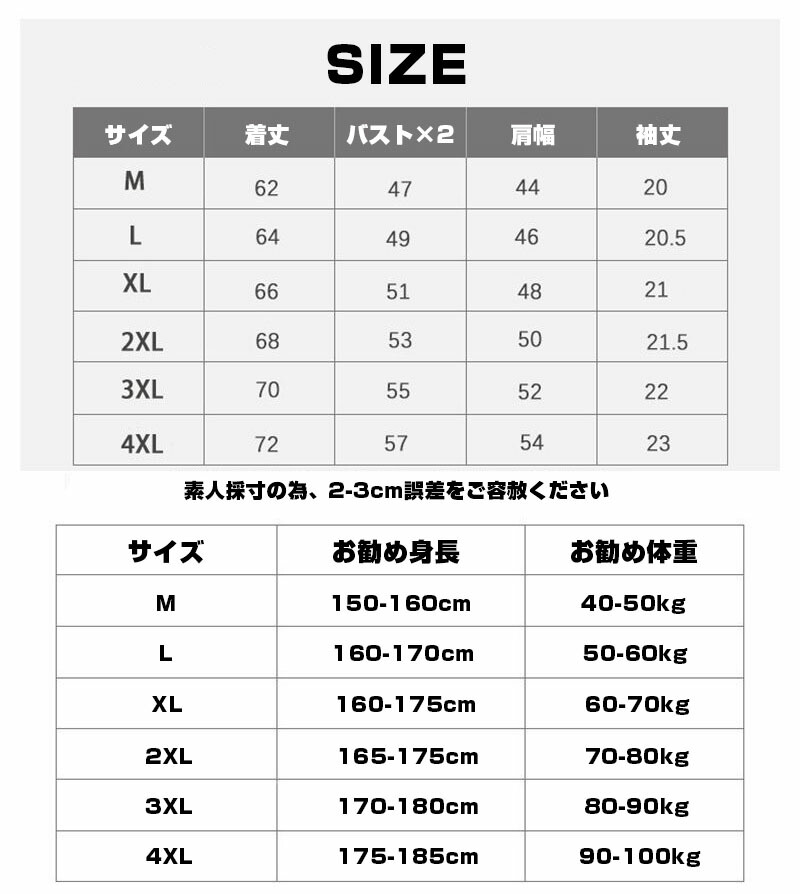 サイズ: M(S相当) L(M相当) XL(M/L相当) 2XL(L/LL相当) 3XL(LL/3L相当) 4XL(3L/4L相当)