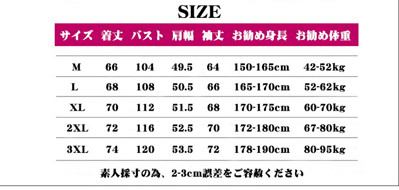 サイズ: M(S相当) L(M相当) XL(L相当) 2XL(L/LL相当) 3XL(LL/3L相当)