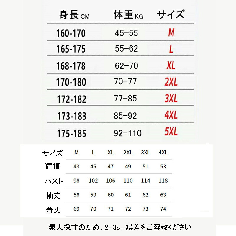 サイズ: M(S相当) L(M相当) XL(L相当) 2XL(LL相当) 3XL(3L相当) 4XL(4L相当)