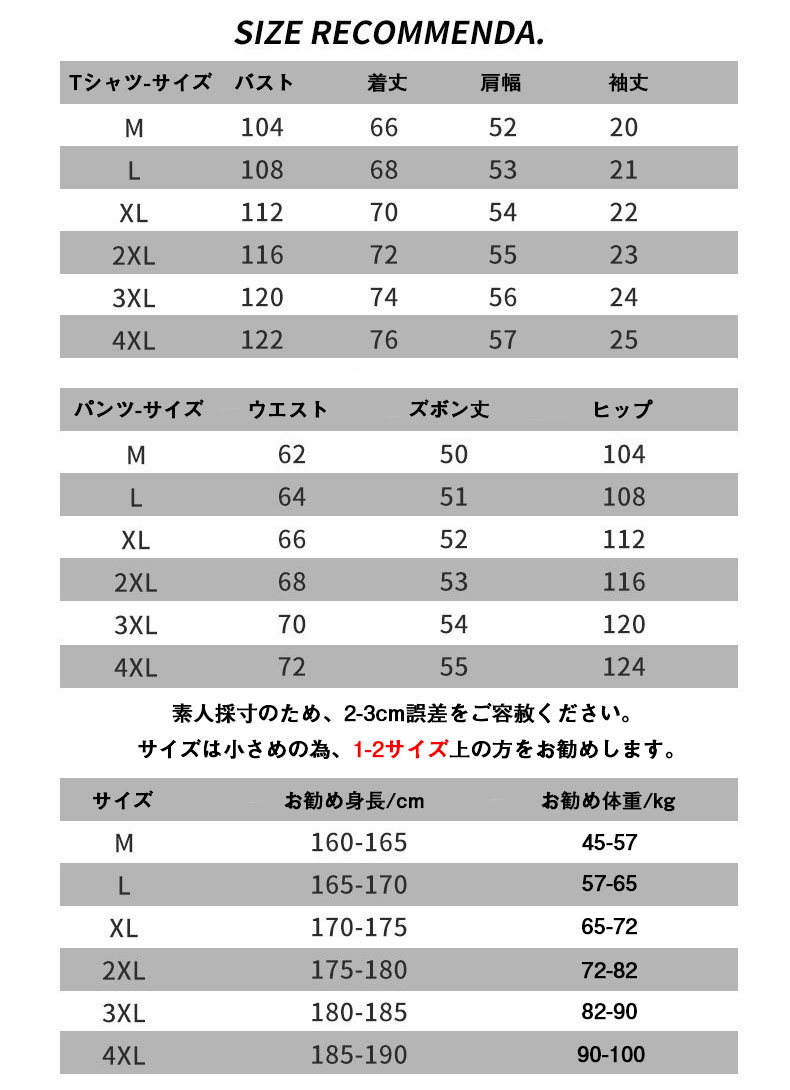 1-2サイズ上をお勧め メンズ セット