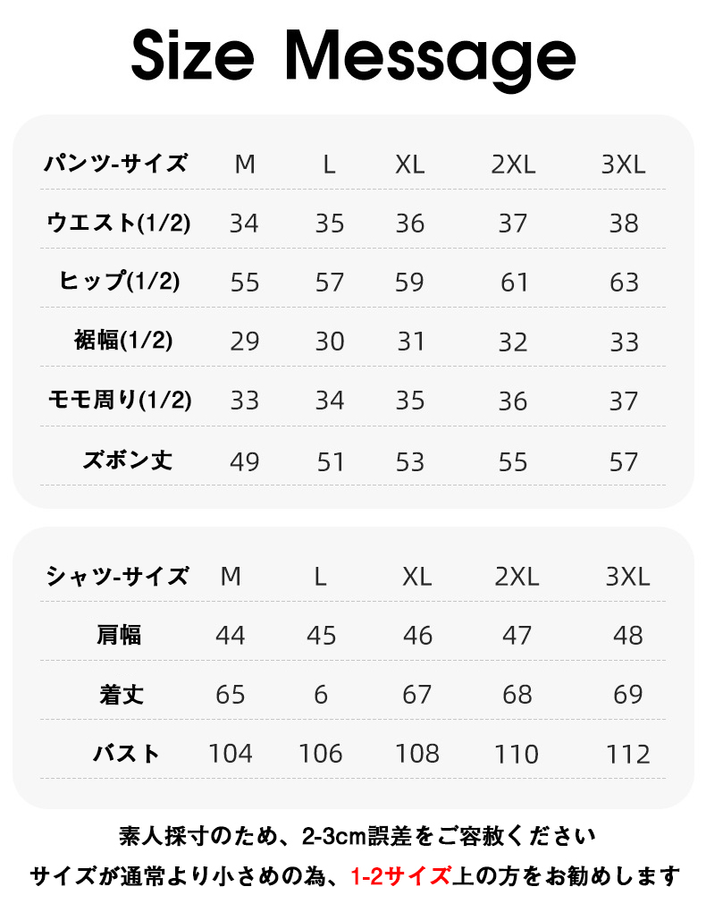 1-2サイズ上をお勧め メンズ セット