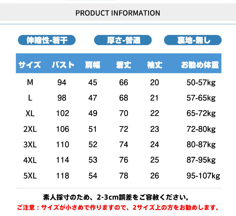 サイズ: L(M相当) XL(M/L相当) 2XL(L/LL相当) 3XL(LL/3L相当) 4XL(3L/4L相当) 5XL(4L/5L相当)