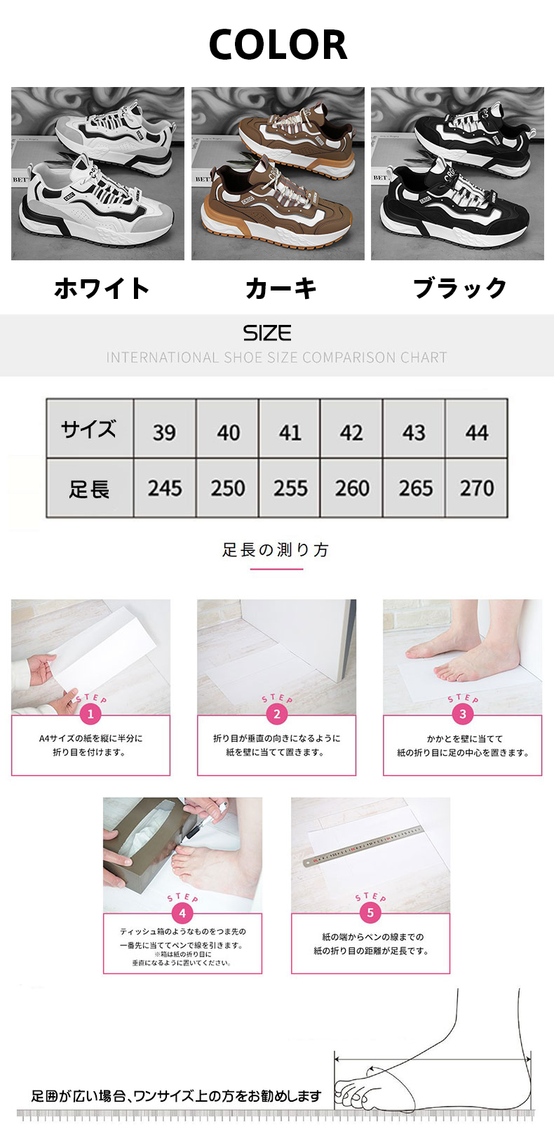 サイズ: 39/24.5 40/25.0 41/25.5 42/26.0 43/26.5 44/27.0