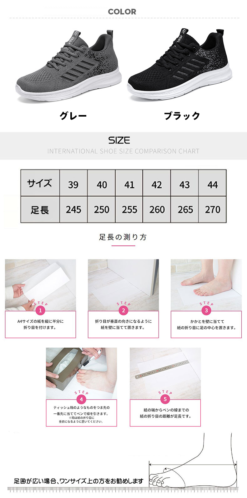 サイズ: 39/24.5 40/25.0 41/25.5 42/26.0 43/26.5 44/27.0