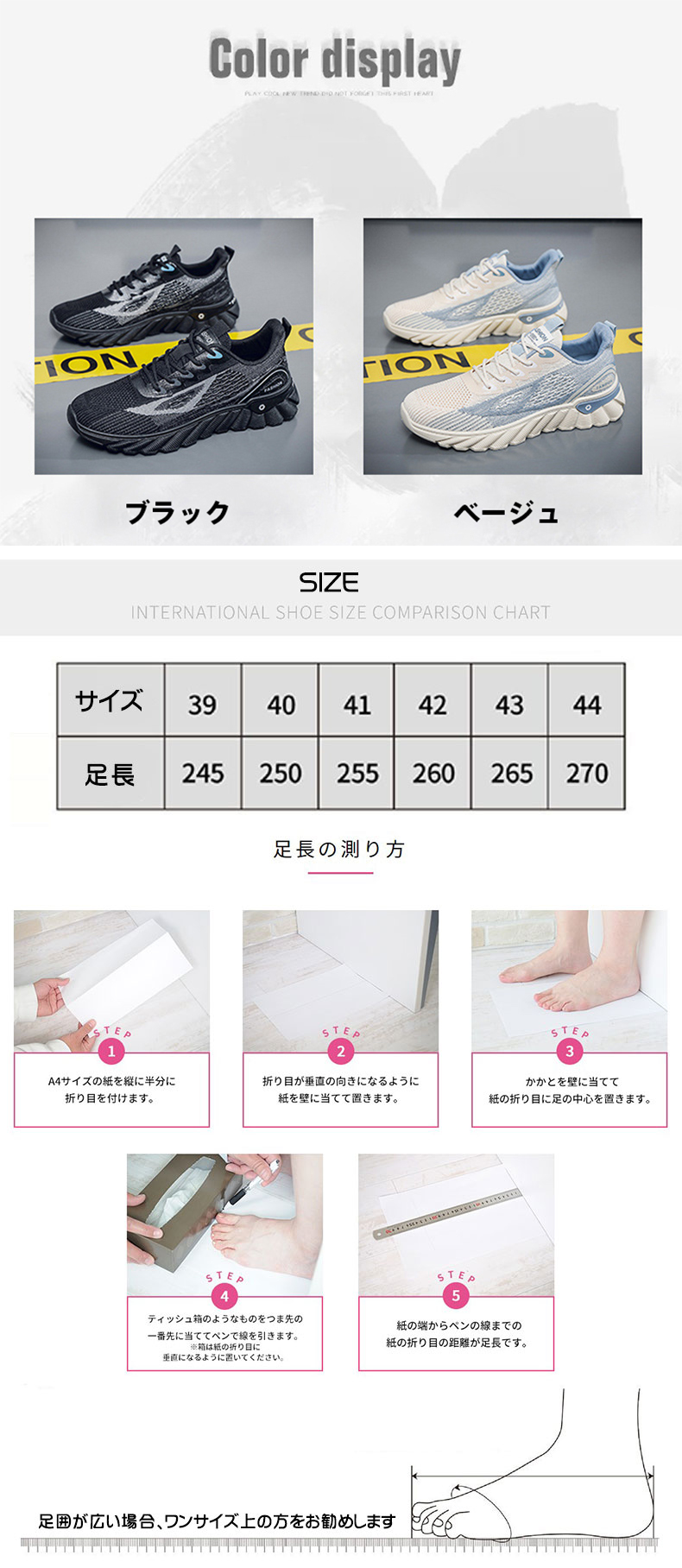 サイズ: 39/24.5 40/25.0 41/25.5 42/26.0 43/26.5 44/27.0