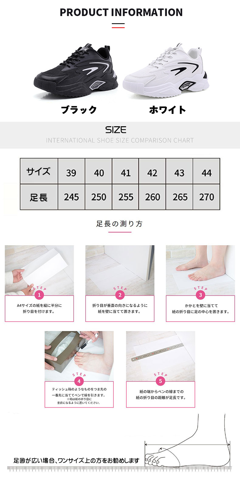 サイズ: 39/24.5 40/25.0 41/25.5 42/26.0 43/26.5 44/27.0