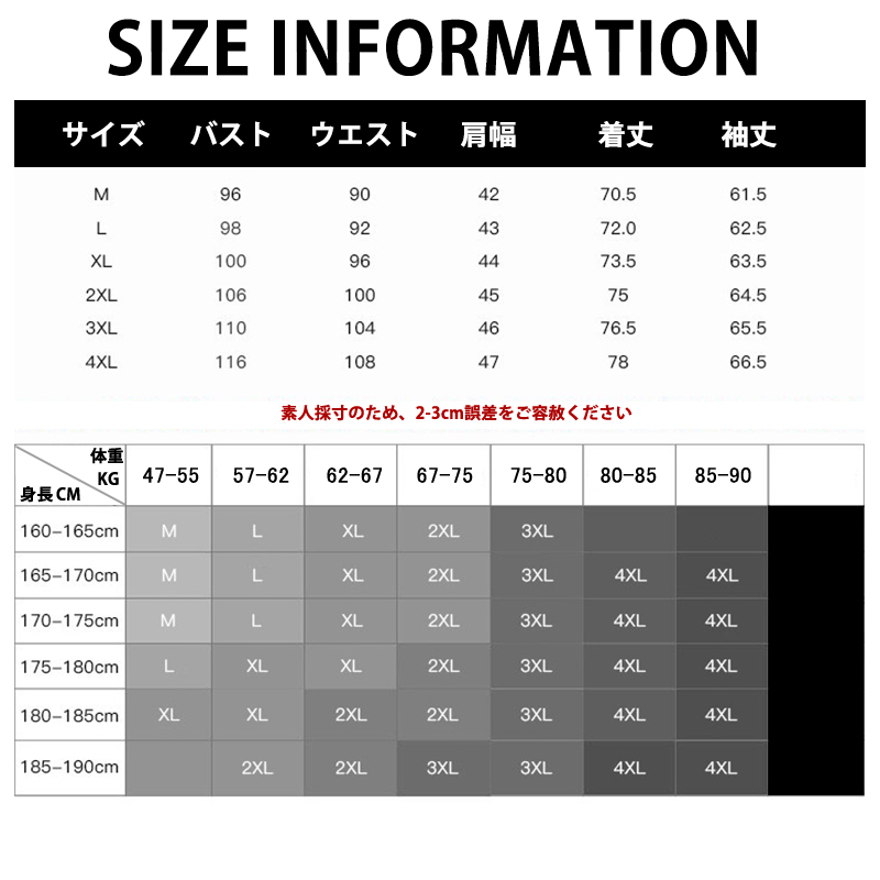 サイズ: M(S相当) L(M相当) XL(L相当) 2XL(LL相当) 3XL(3L相当) 4XL(4L相当)