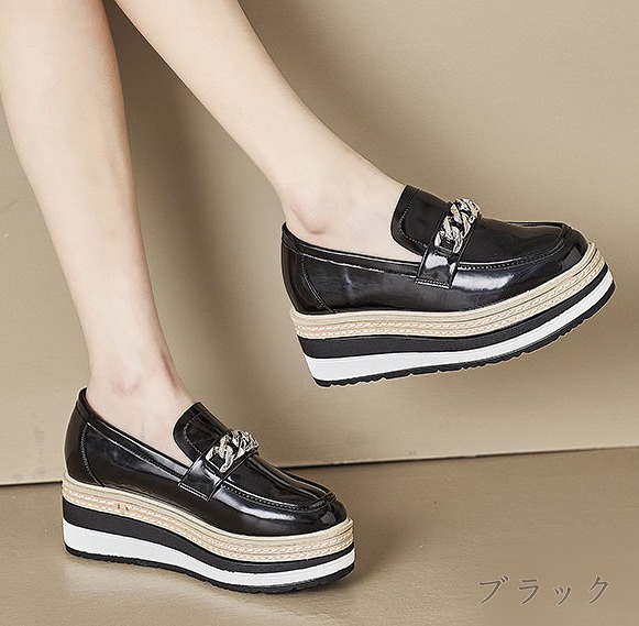 スリッポン ローファー モカシン 厚底 厚底靴 プラットフォーム ウエッジ 英国調 原宿系ファッション 韓国風 ダンス 衣装 ダンサー ヒップホップ HIPHOP 個性 奇抜 かわいい 青文字系 美足